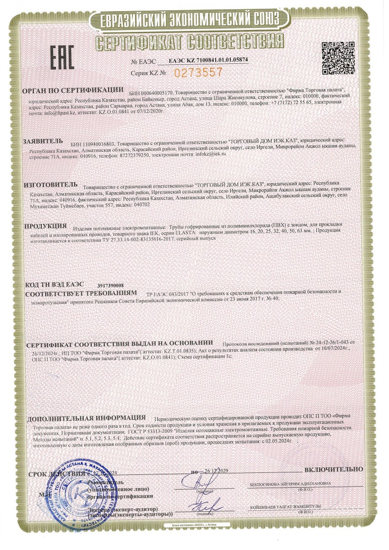 № ЕАЭС ЕАЭС KZ 7100841.01.01.05874 (ТР ЕАЭС 043/2017) до 26.12.2029