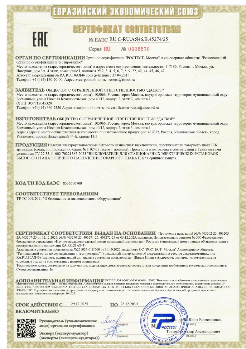 № ЕАЭС RU С-СN.АЯ46.В.45274/25 (ТР ТС 004/2011) до 28.12.2030