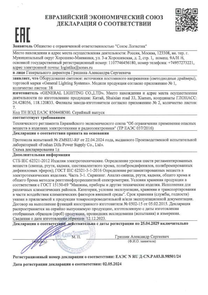 ЕЭСДС 037 №ЕАЭС RU Д-CN.PA03.B.98501.24 general до 25.04.2029
