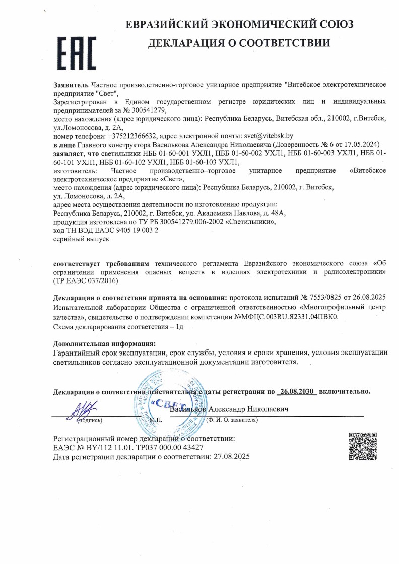 ЕЭСДС 037 №ЕАЭС № BY/112 11.01. TP037 000.00 43427 СВЕТ до 26.08.2030