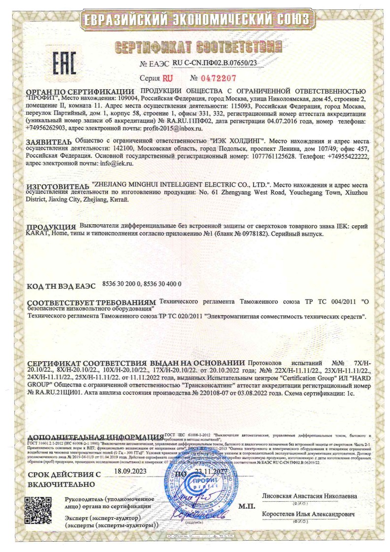 № ЕАЭС RU C-CN.АЯ4.В.07650/23 (ТР ТС 004/2011, ТР ТС 020/2011) до 23.11.2027