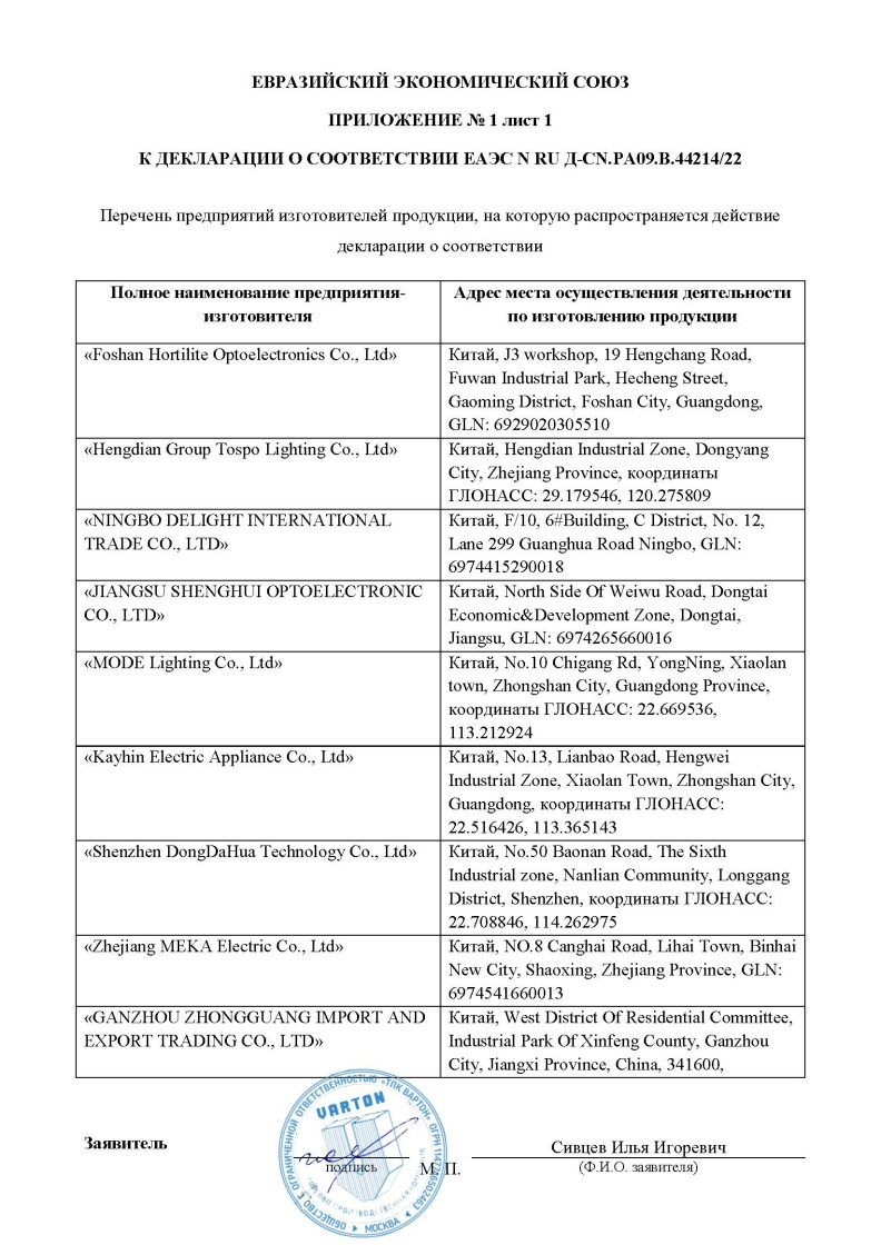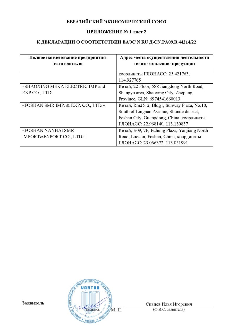 ЕАЭС №ЕАЭС N RU Д-СN.PA09.В.44214/22 до 26.12.2027
