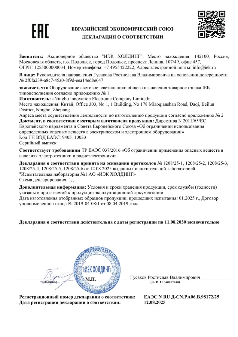 ЕАЭС N RU Д-CN.PA06.B.98172/25 (ТР ЕАЭС 037/2016) до 11.08.2030