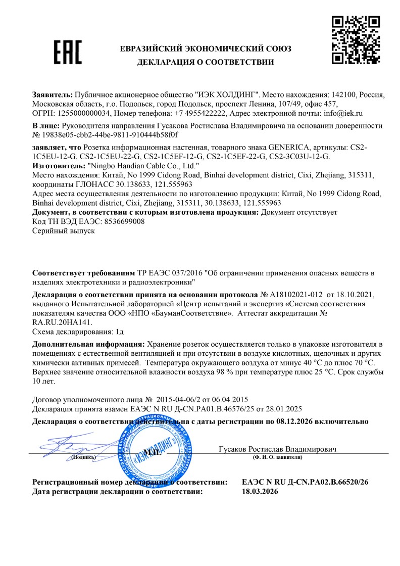 ЕАЭС N RU Д-CN.PA02.B.665205/26 (ТР ЕАЭС 037/2016) до 08.12.2026