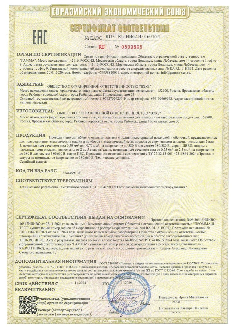 ЕАЭС №ЕАЭС RU C-RU.НБ62.B.01604/24 до 10.11.2029
