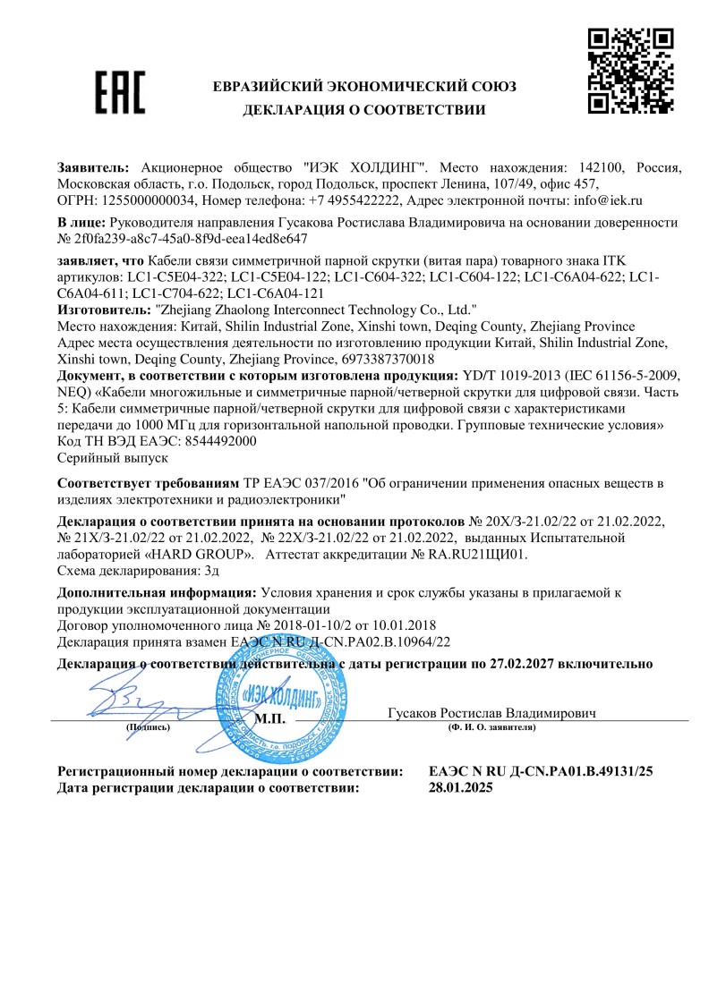 № ЕАЭС RU Д-CN.РА01.В.49131/25 (ТР ЕАЭС 037/2016) до 27.02.2027