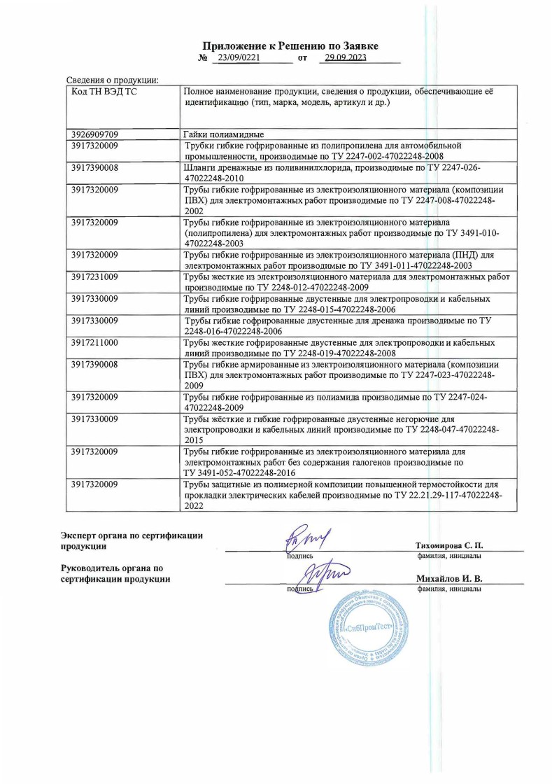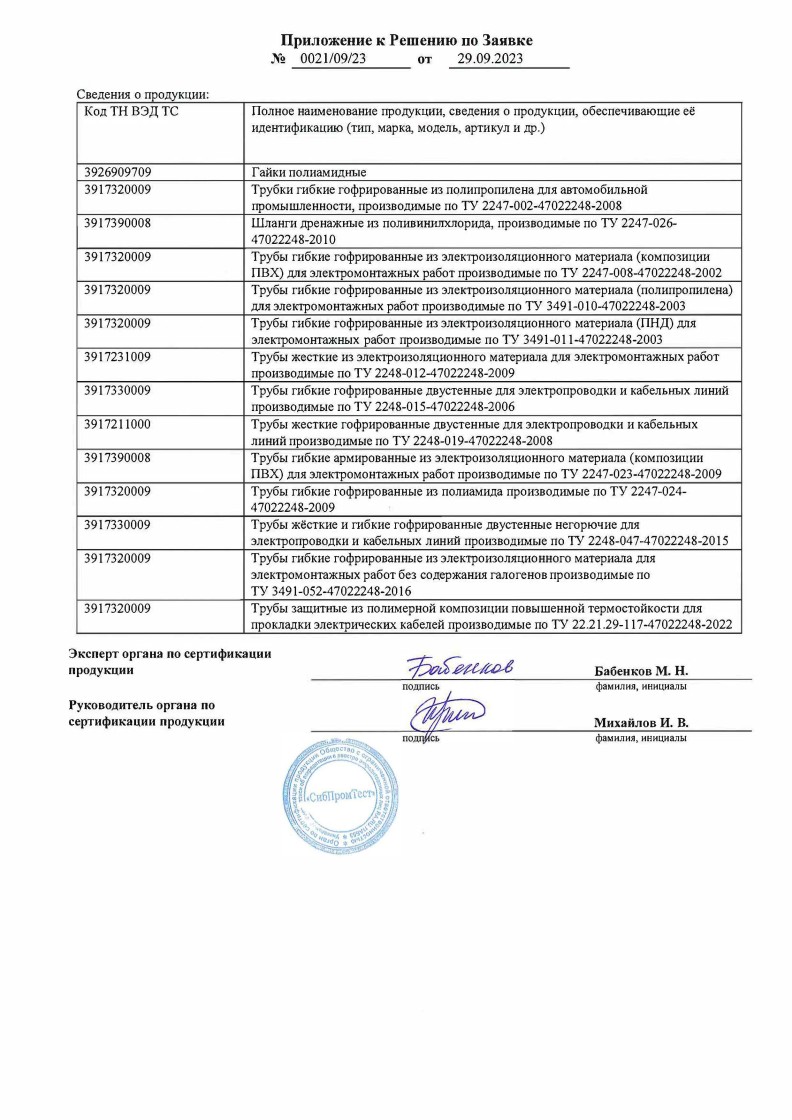 Список товаров, попадающих под этот сертификат