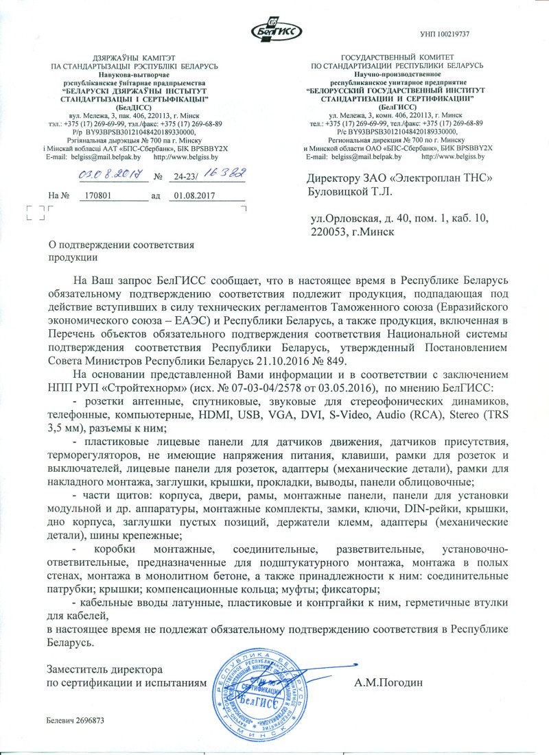 Список товаров, попадающих под этот сертификат