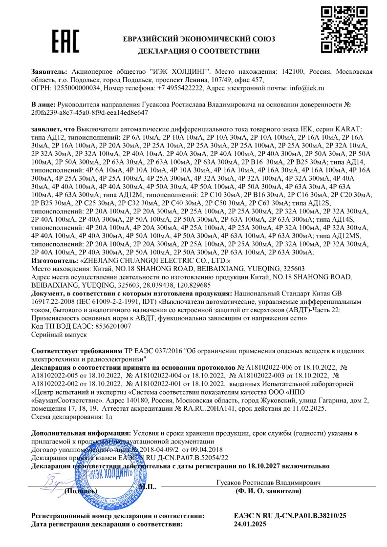 ЕАЭС N RU Д-CN.PA01.B.38210/25 (ТР ЕАЭС 037/2016) до 18.10.2027