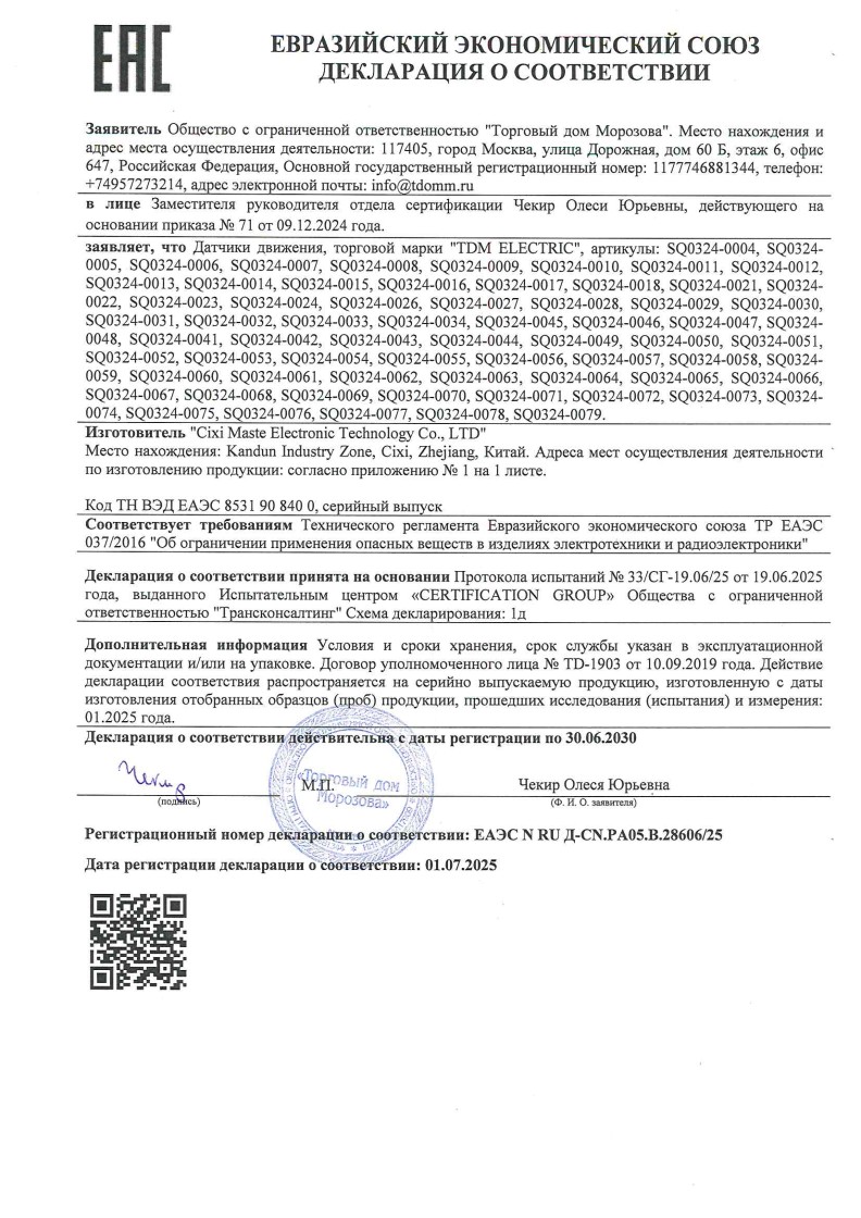 ЕАЭС N RU Д-CN.PА05.B.28606/25 (ТР ЕАЭС 037/2016) до 30.06.2030