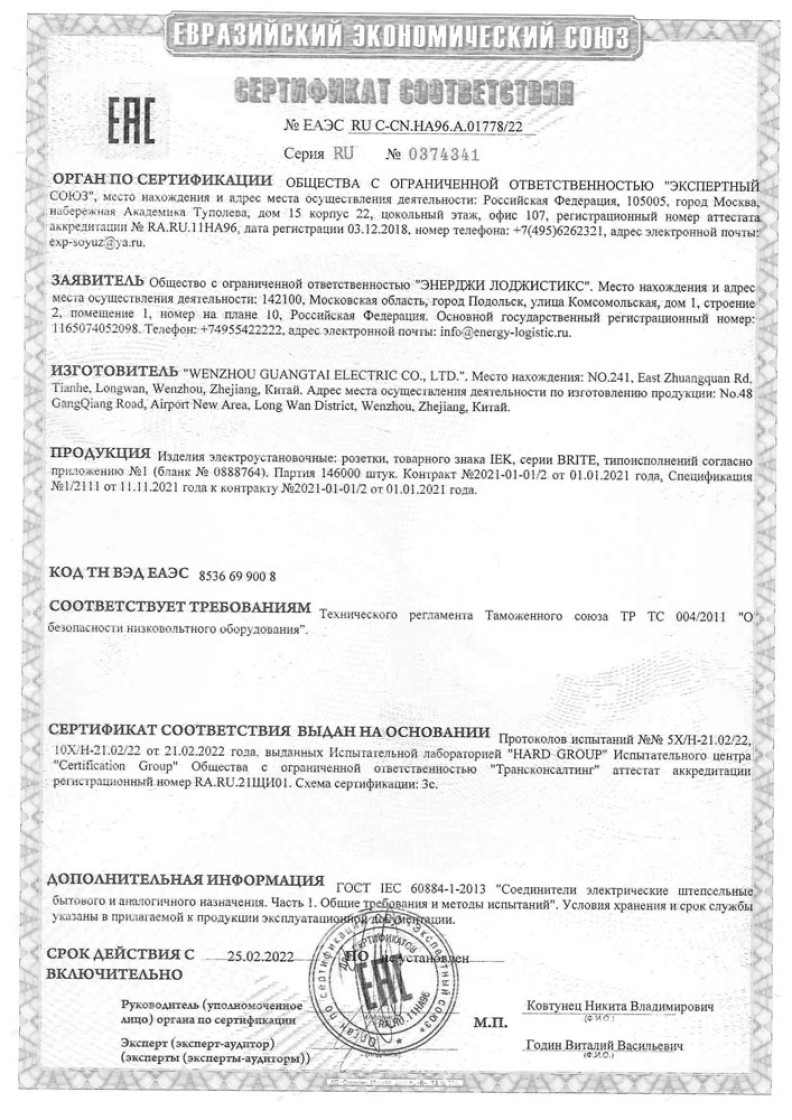 № ЕАЭС RU С-СN.НА96.А.01778/22 (ТР ТС 004/2011)