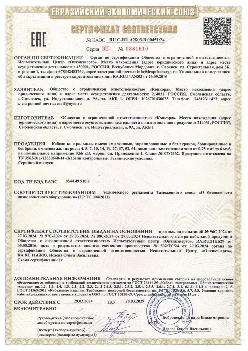 ЕАЭС №ЕАЭС RU C-RU.AЖ03.B.00451/24 до 29.05.2029