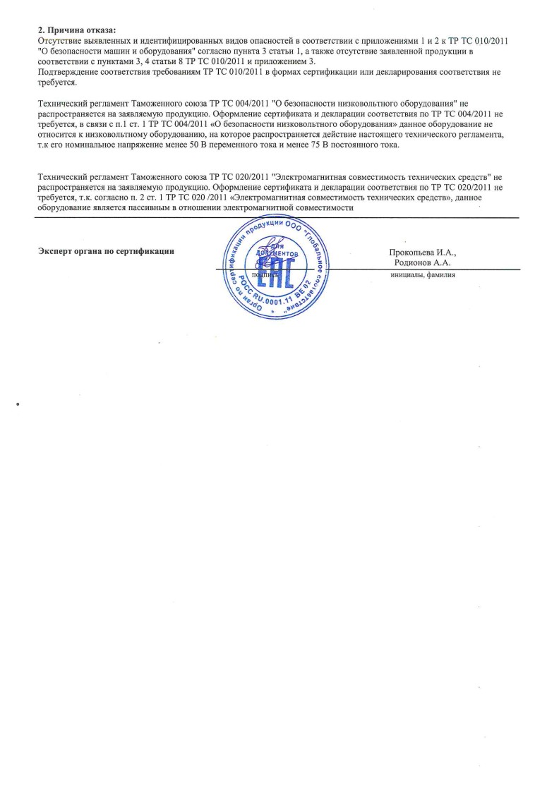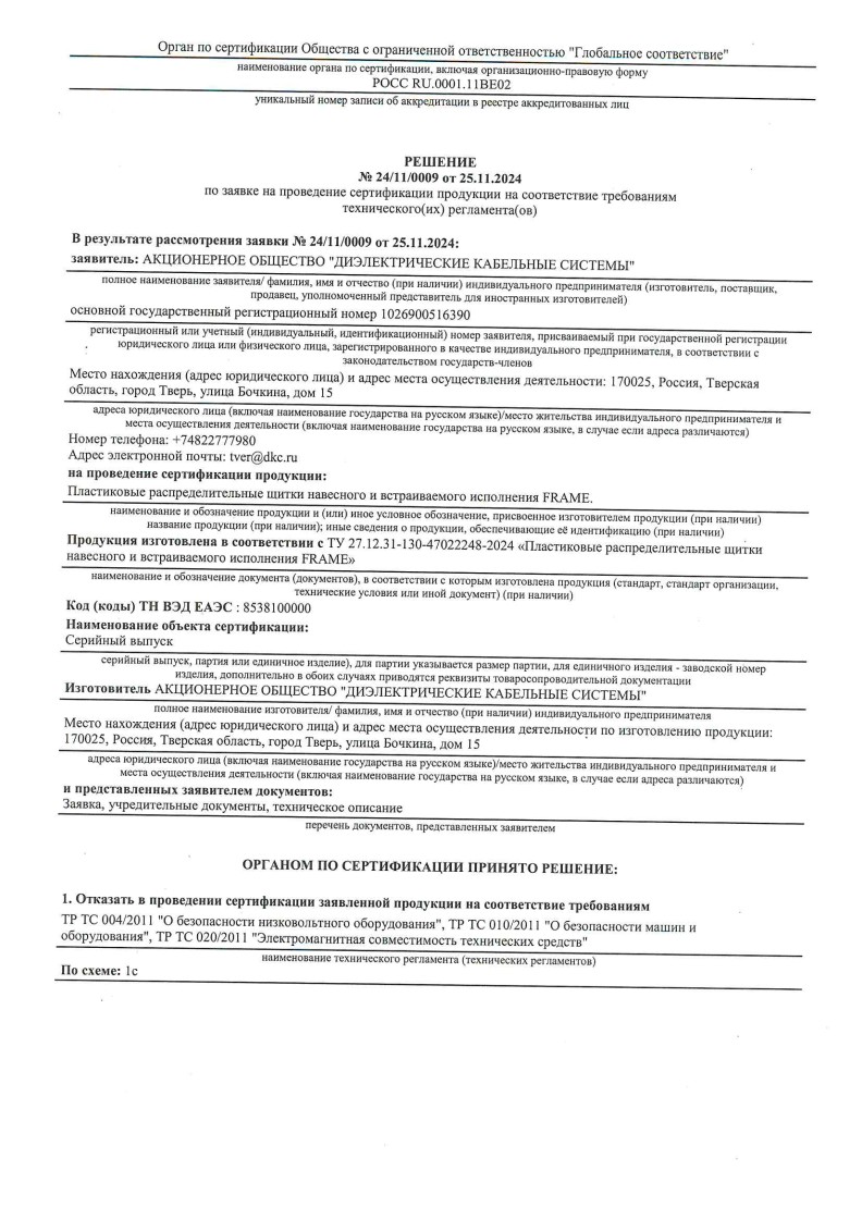 РЕШЕНИЕ № 24/11/0009 (ТР ТС 004,010,020)