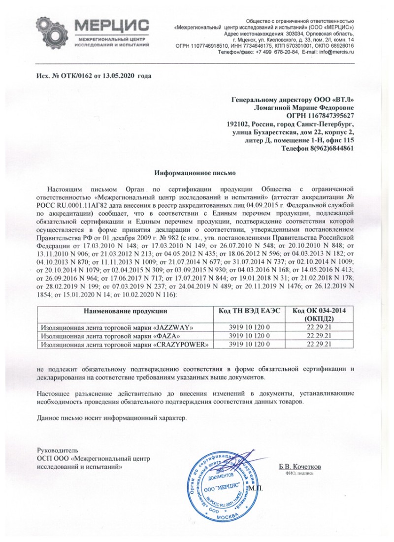 Список товаров, попадающих под этот сертификат