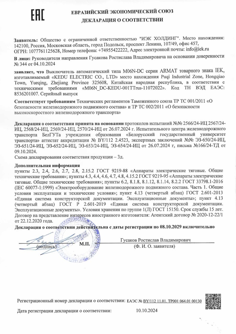 ЕАЭС №BY112/112 11.01. ТР01 064.01 00130 (ТР ТС 002/2011) до 06.08.2028