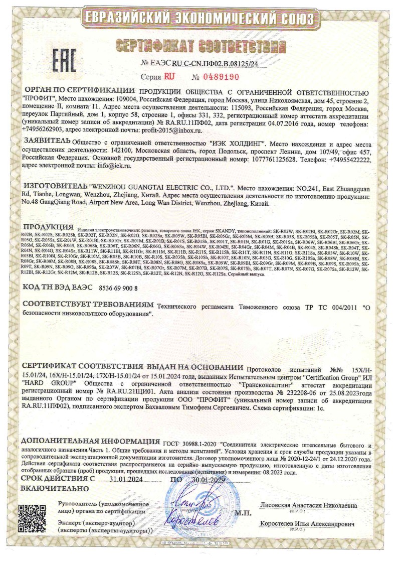 № ЕАЭС RU С-СN.СП28.В.08125/25 (ТР ТС 004/2011) до 30.01.2030