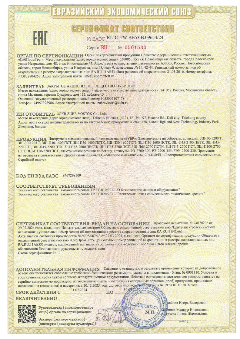 ЕАЭС №ЕАЭС № RU С-ТМ.АБ53..В.09654/24 до 30.07.2029
