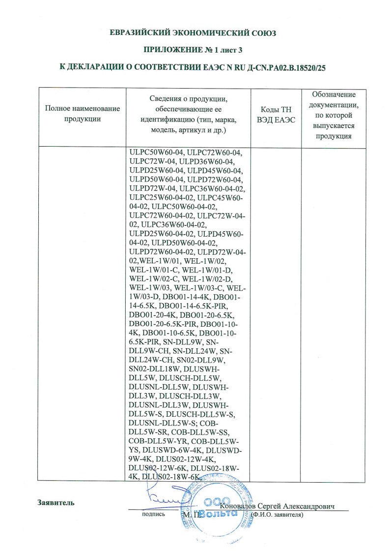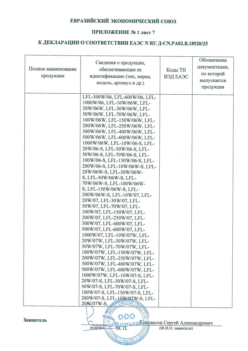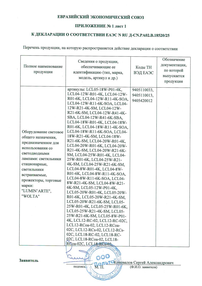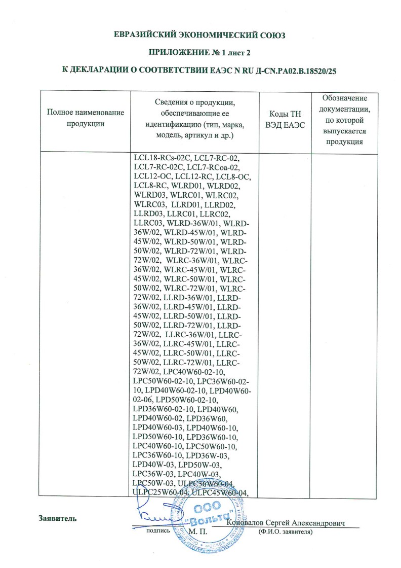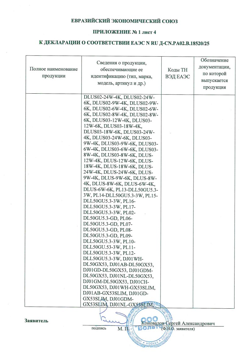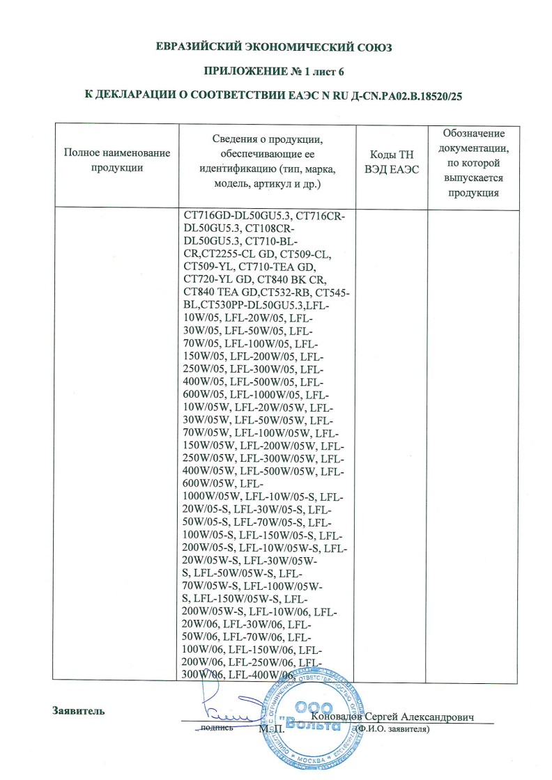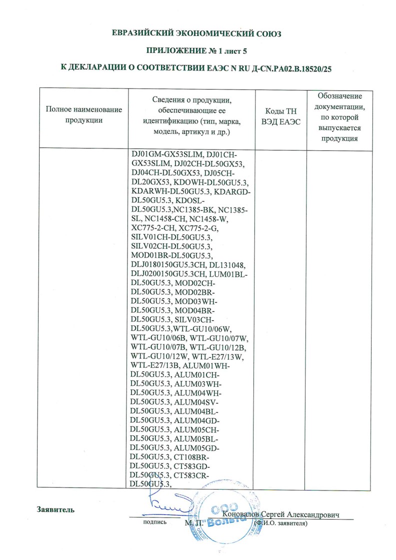 Список товаров, попадающих под этот сертификат