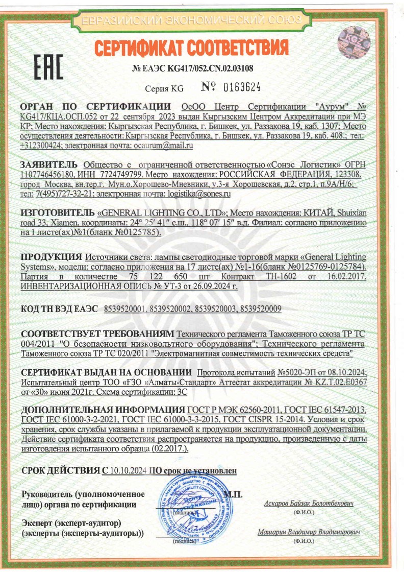 ЕАЭС №ЕАЭС KG417/052.СN.02.03108 General