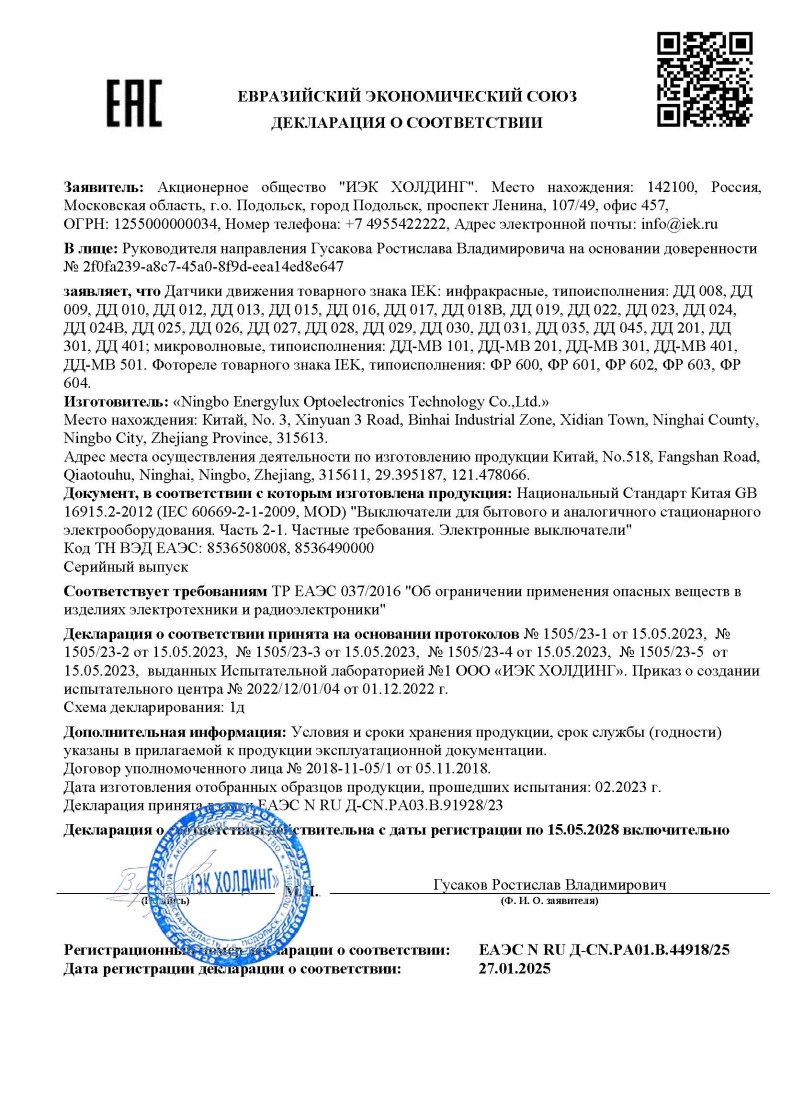 ЕАЭС №RU Д-CN.РА01.В.44918/25 (ТР ЕАЭС 037/2016) до 15.05.2028