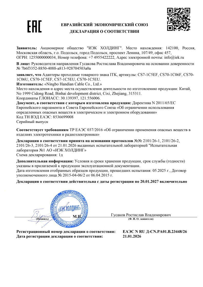 ЕАЭС N RU Д-CN.PA01.B.23448/26 (ТР ЕАЭС 037/2016) до 20.01.2027
