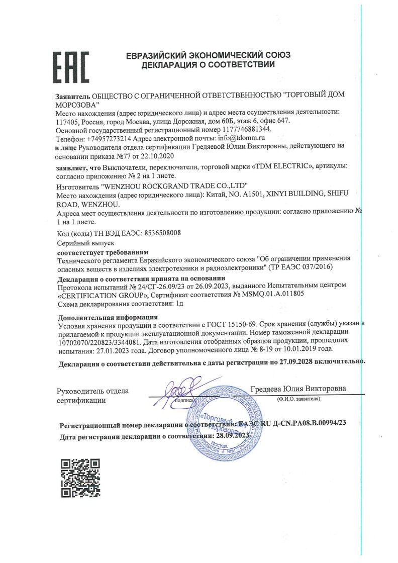 ЕАЭС N RU C-CN.РА08.В.00994/23 (ТР ЕАЭС 037/2016) до 27.09.2028