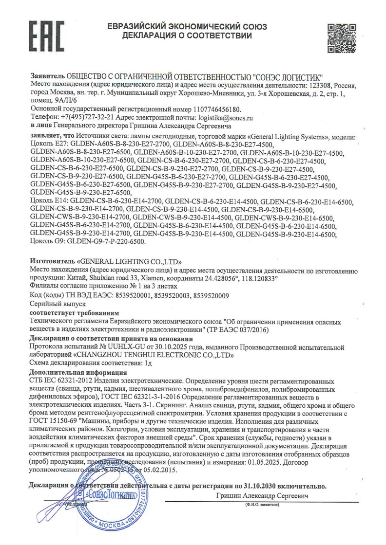 ЕЭС ДС №ЕАЭС RU Д-CN.PA09.B.99425/25 general до 31.10.2030