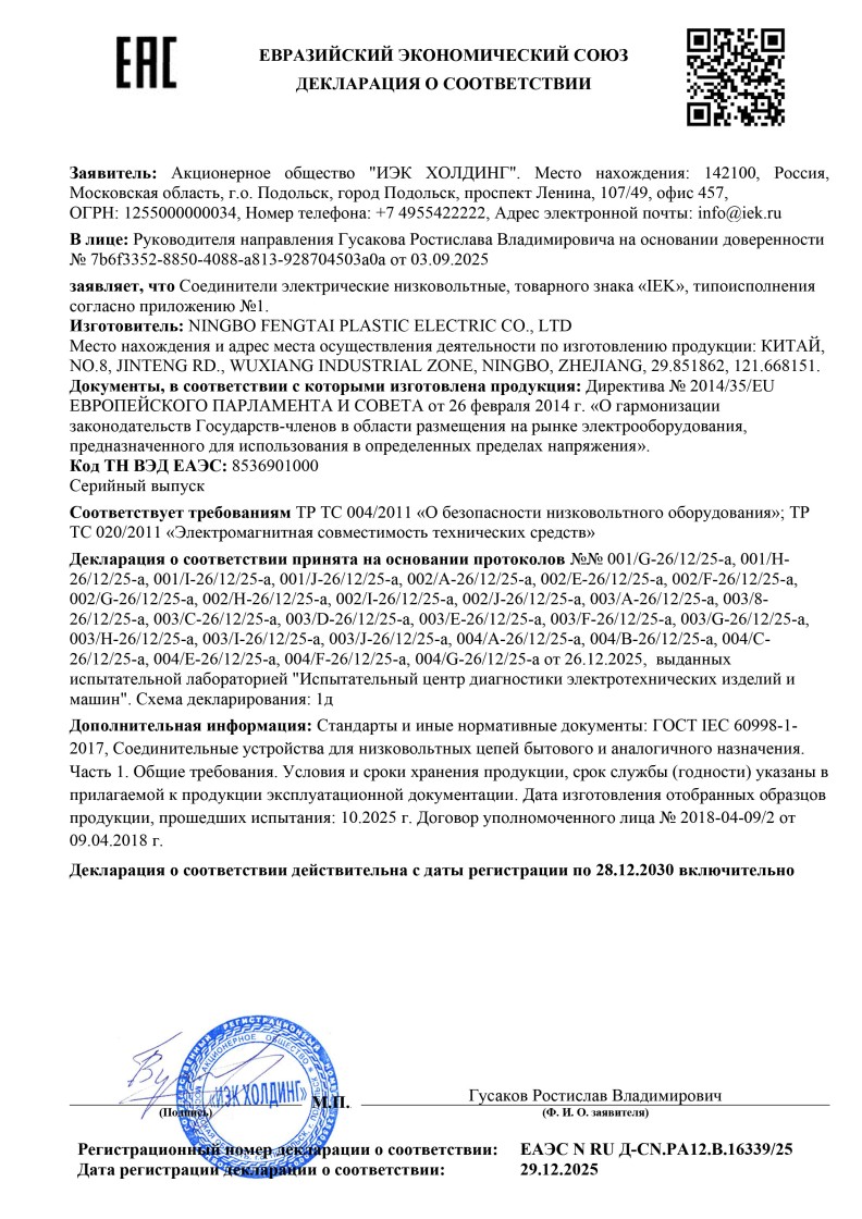 ЕАЭС N RU Д-СN.РА02.В.16339/25 (ТР ТС 004/2011, ТР ТС 020/2011) до 28.12.2030