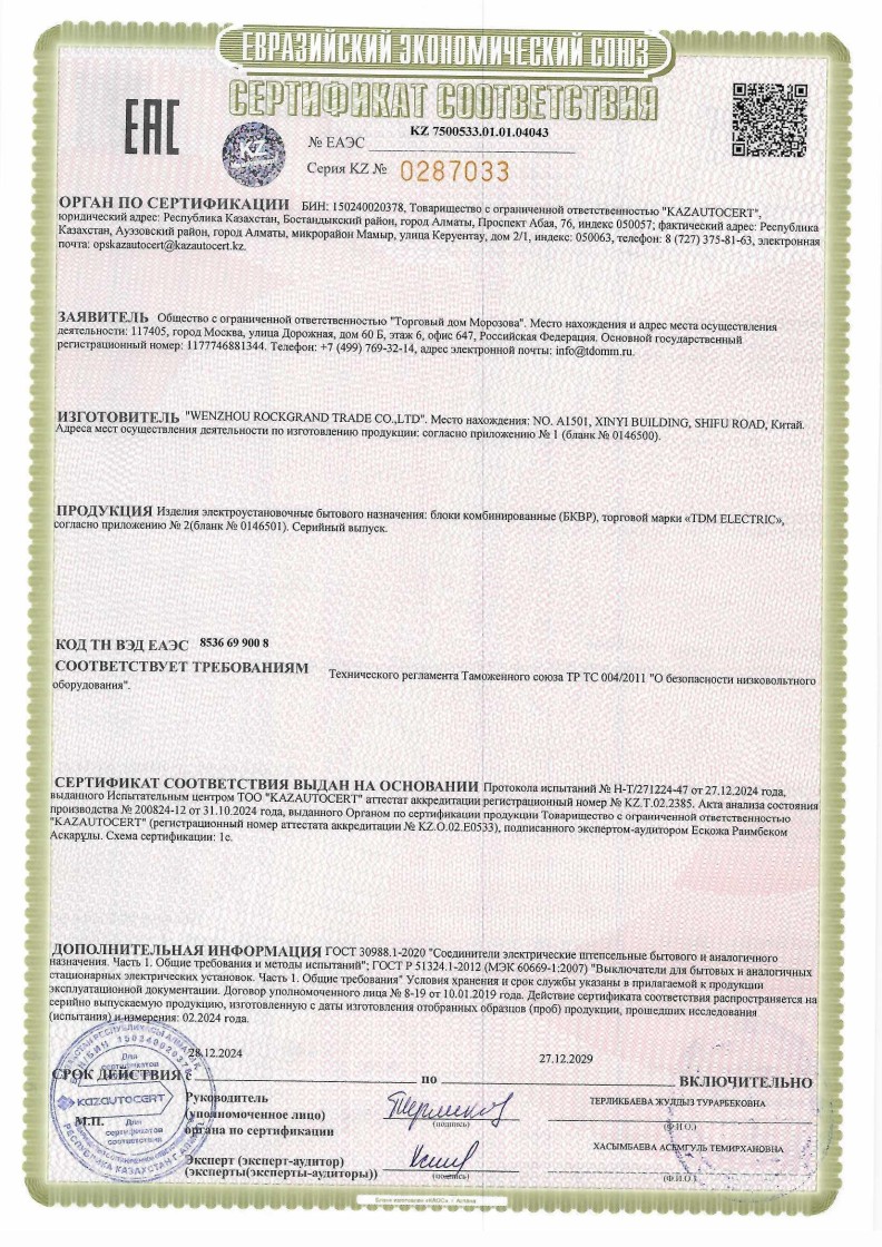 ЕАЭС №ЕАЭС KZ 7500533.01.01.04043 ТДМ до 27.12.2029