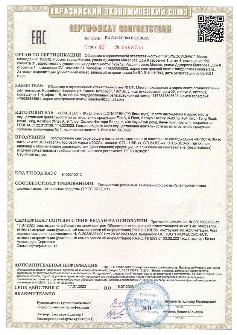 ЕАЭС №ЕАЭС RU C-HK.HB93.B.03618/23 до 16.07.2028