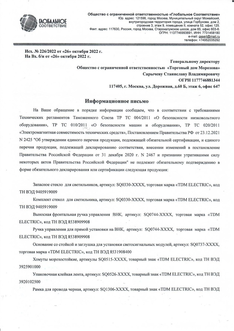 Список товаров, попадающих под этот сертификат