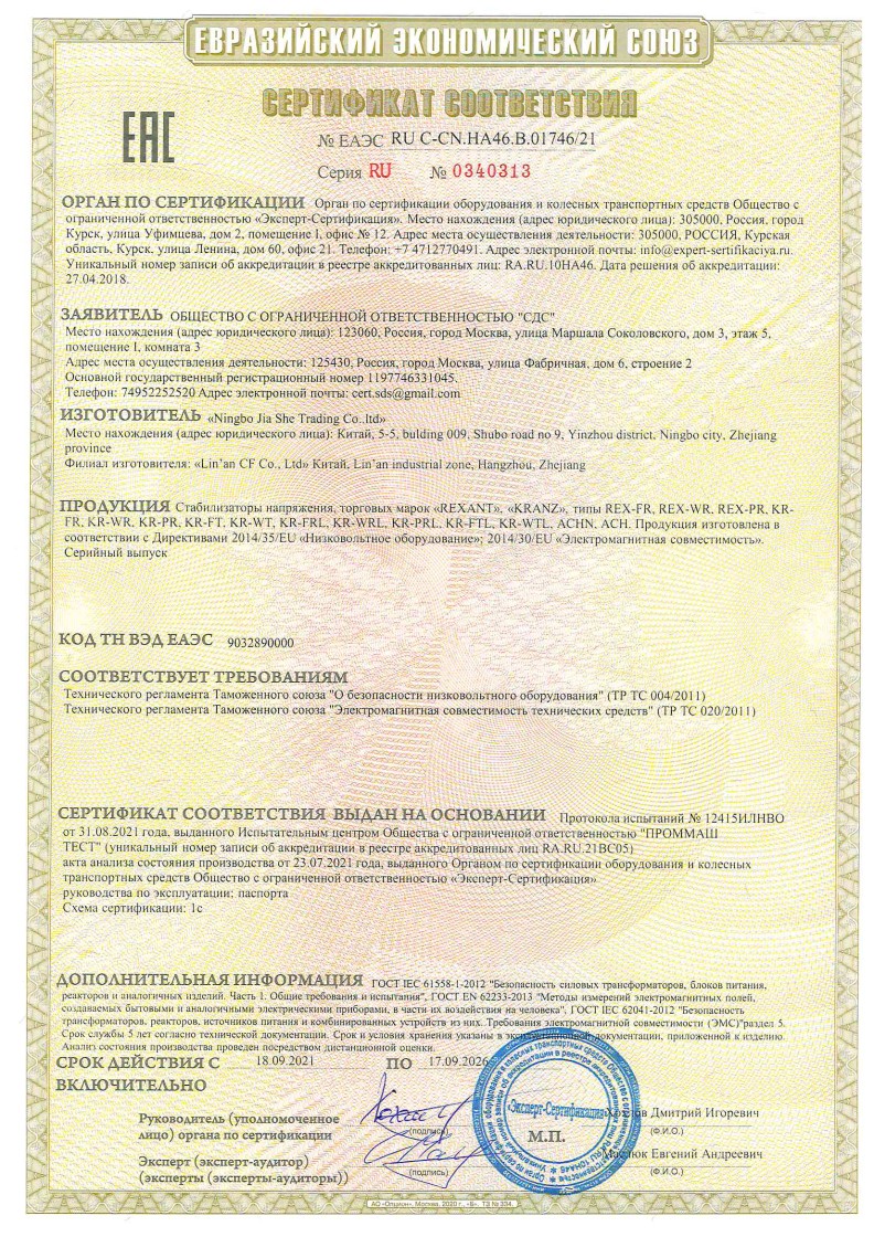ЕАЭС №ЕАЭС RU S-CN.NA46.V.01746 до 17.09.2026
