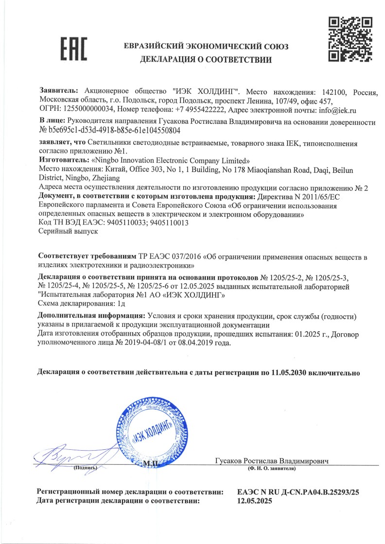 ЕАЭС N RU Д-СN.PA04.B.25293/25 (ТР ЕАЭС 037/2016) до 11.05.2030