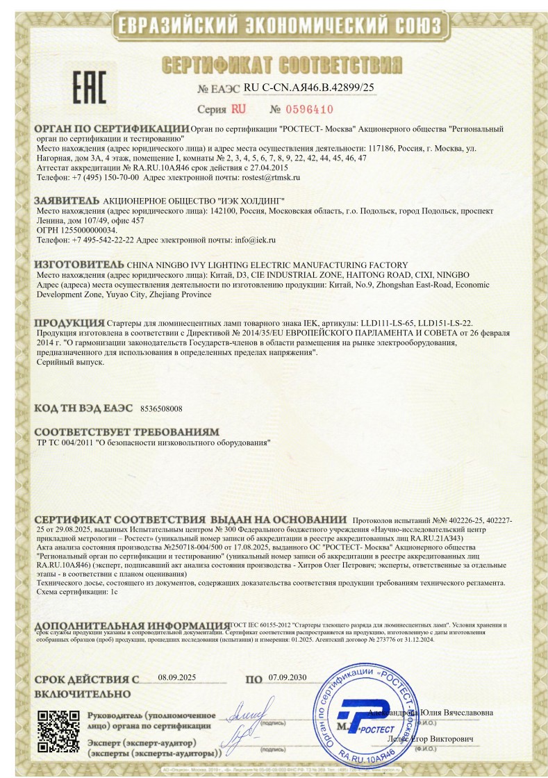 № ЕАЭС RU C-CN.AЯ46.B.42899/25 (ТР ТС 004/2011) до 07.09.2030