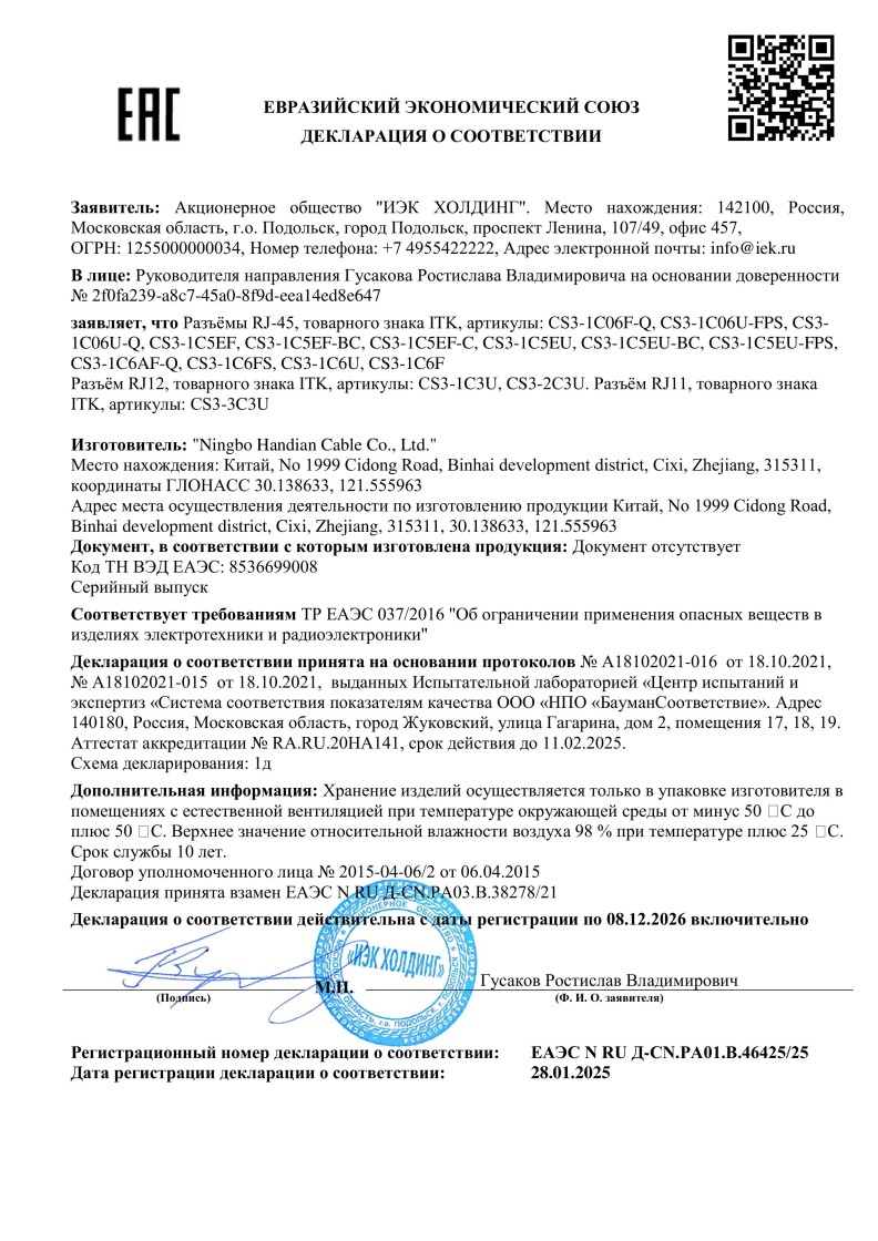 ЕАЭС N RU Д-CN.PA02.B.46425/25 (ТР ЕАЭС 037/2016) до 08.12.2026