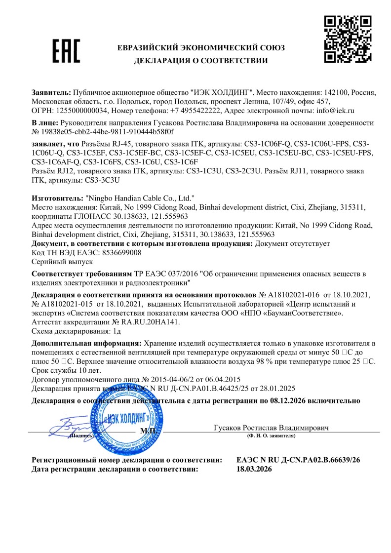 ЕАЭС N RU Д-CN.PA02.B.66639/26 (ТР ЕАЭС 037/2016) до 08.12.2026
