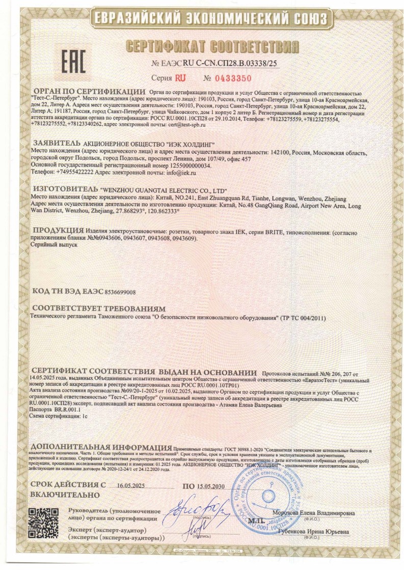 № ЕАЭС RU С-СN.СП28.В.03338/25 (ТР ТС 004/2011, ТР ТС 020/201 до 15.05.2030