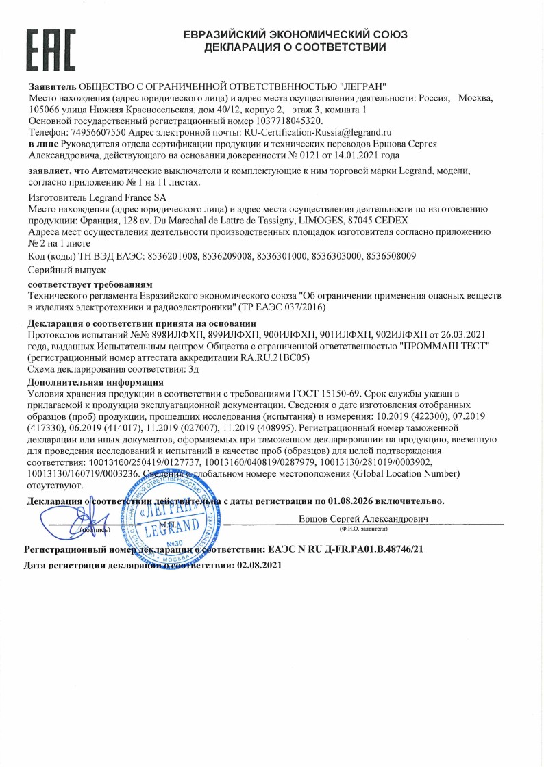 ЕАЭС №RU Д-FR.PA01.В.48746/21 (ТР ЕАЭС 037/2016) до 01.08.2026
