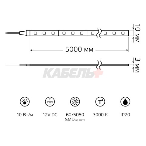 Лента Gauss Basic в комплекте LED 5050/60 12V 10W/m 700lm/m 3000K 10mm IP20 5m 1/50