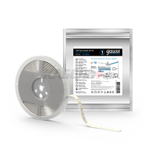 Лента Gauss LED Elementary 5050/60 12V 14.4W 6500K 10mm IP20 5m (ZIP bag) 1/100