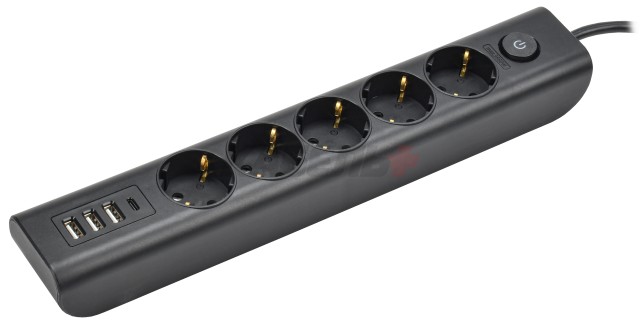 MODERN Удлинитель У05В 5 мест с заземляющим контактом 2м 3х1мм2 16А/250В USBх4 черный IEK