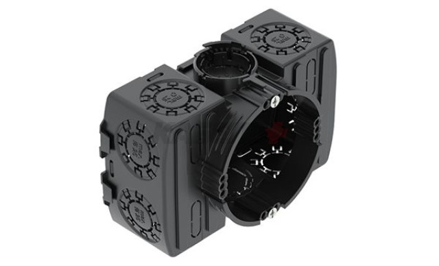 OBO-Bettermann - Подрозетник UE 46 одиночный, прямоугольный, 650°С, Ø64мм, h=50мм, для спл. стен, c винтами, черный, полипропилен - Артикул: 2003725
