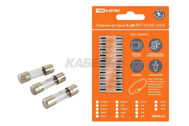 Плавкая вставка ВПБ6-1 0,16А 250В TDM упак (10 шт.)