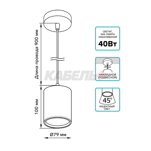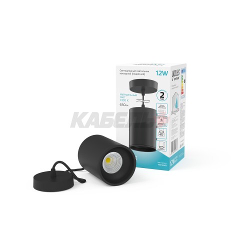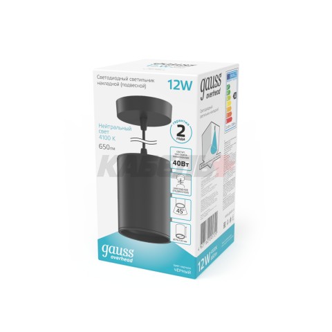 Светильник Gauss Overhead подвес цил12W 650lm 4100K 170-240V IP20 79*100мм черный LED 1/20
